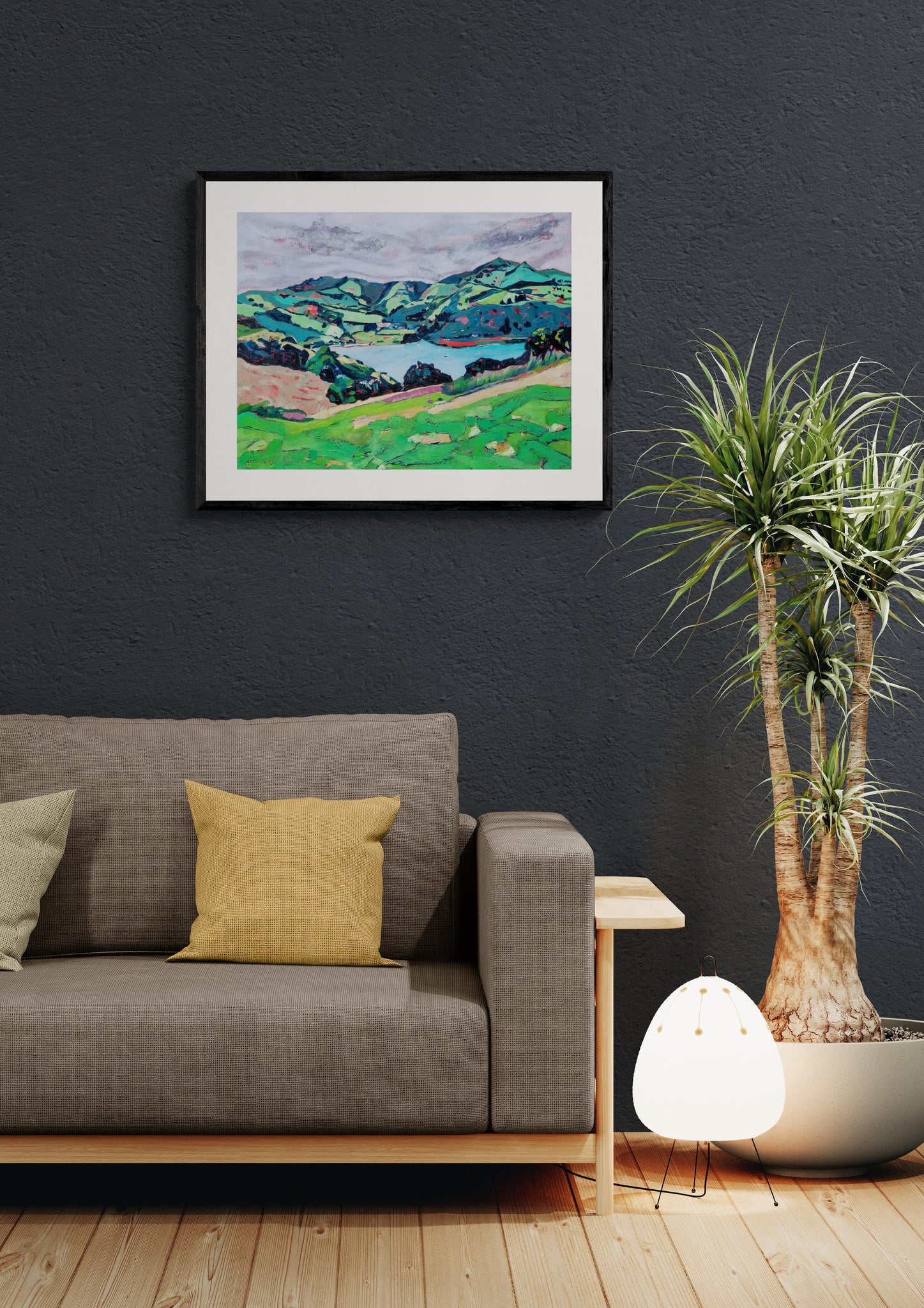 Contours of Memory captures a vivid New Zealand landscape where rolling green hills meet the calm curve of the harbour. Rich textures and layered colour evoke the movement of light across the land blending energy with tranquility. A striking piece that embodies the spirit and beauty of place - perfect for bringing vibrancy and connection to your space.